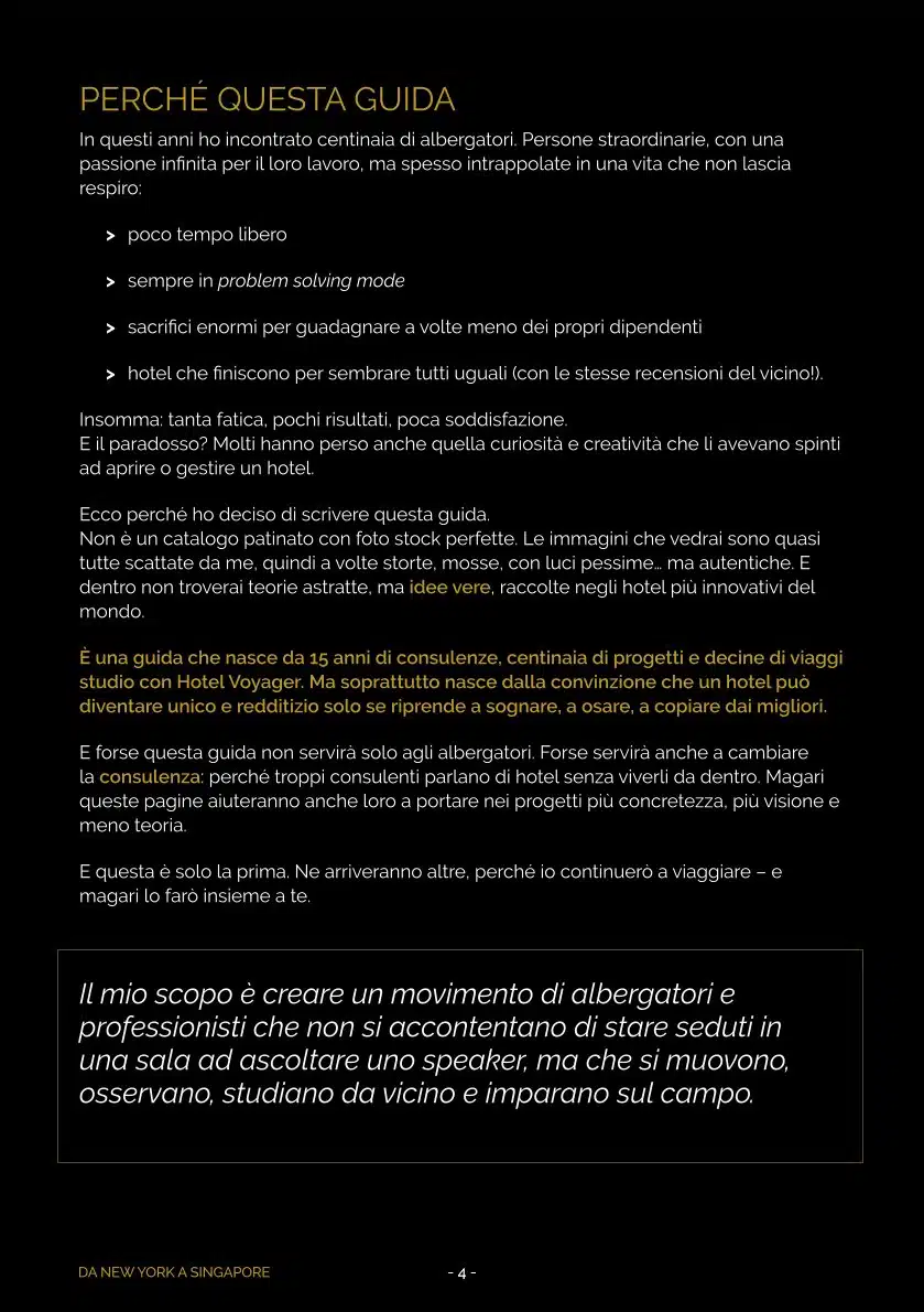 Dopo anni di consulenze e viaggi studio in tutto il mondo, ho deciso di raccogliere le idee più intelligenti, sostenibili e redditizie viste in oltre 35 hotel a New York, Berlino, Londra, Amsterdam, Singapore e Rio.