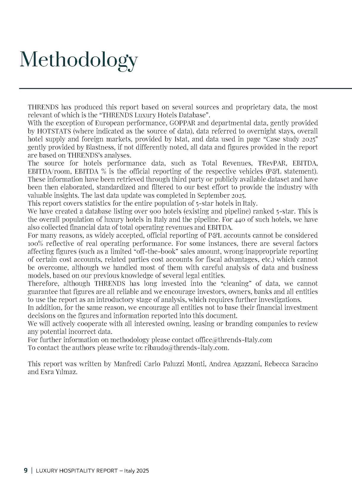 Il report, redatto integralmente in inglese, si basa sull’elenco completo di tutti gli hotel di lusso in Italia e sulle nuove aperture.